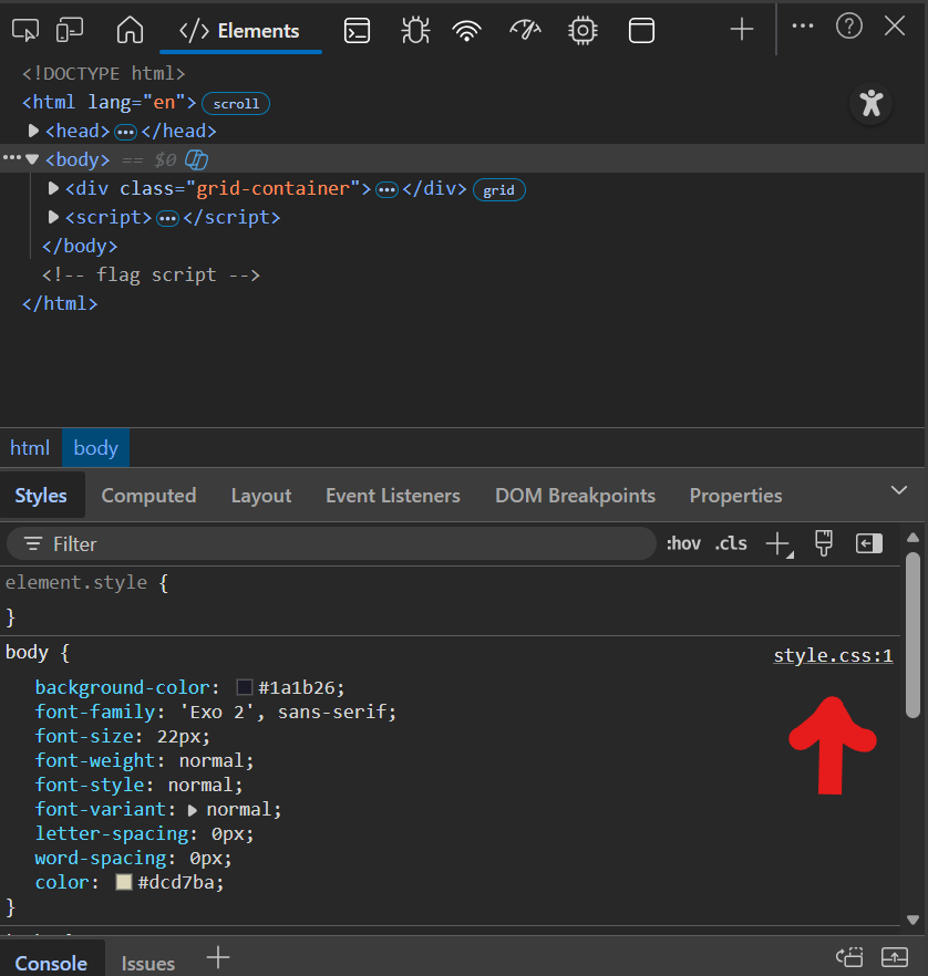 Alternatively, you can access the CSS file through the inspector tool as such: